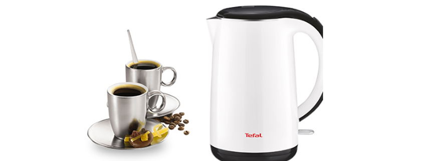 Tefal представляет новинку - мощный чайник Safe to Touch в элегантном белом корпусе с двойными стенками, которые защищают от ожогов. Удобная кнопка включения имеет световой индикатор, после закипания чайник в течение 30 минут поддерживает температуру воды в режиме термоса.